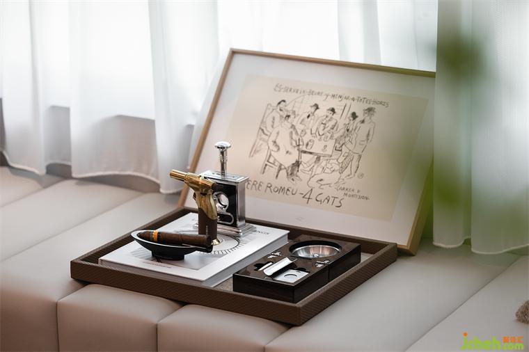 在家具的選型上突出品質(zhì)感,陳列的裝飾品則突出精致的藝術感。樣板房設計巧思之下,不管是自然的葉子還是藝術品都是富含著強烈人文氣息的存在。