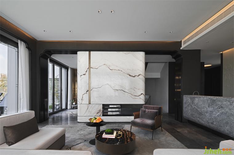 尋一處現(xiàn)代境,幽趣婉轉(zhuǎn)。一層的客廳以光影流動(dòng),木飾面、大理石交織出不同層次秩序,給予空間精致質(zhì)感,布局打破常規(guī)的空間界限,強(qiáng)調(diào)空間線條感與生活功能性的思考,客廳、餐廳與閱讀區(qū)融合實(shí)現(xiàn)多場(chǎng)景對(duì)話打造生活空間,以連貫的手法和語言造型呈現(xiàn),向內(nèi)外延伸。開放式的格局,讓空間更為寬敞通透,營造舒展的氛圍。