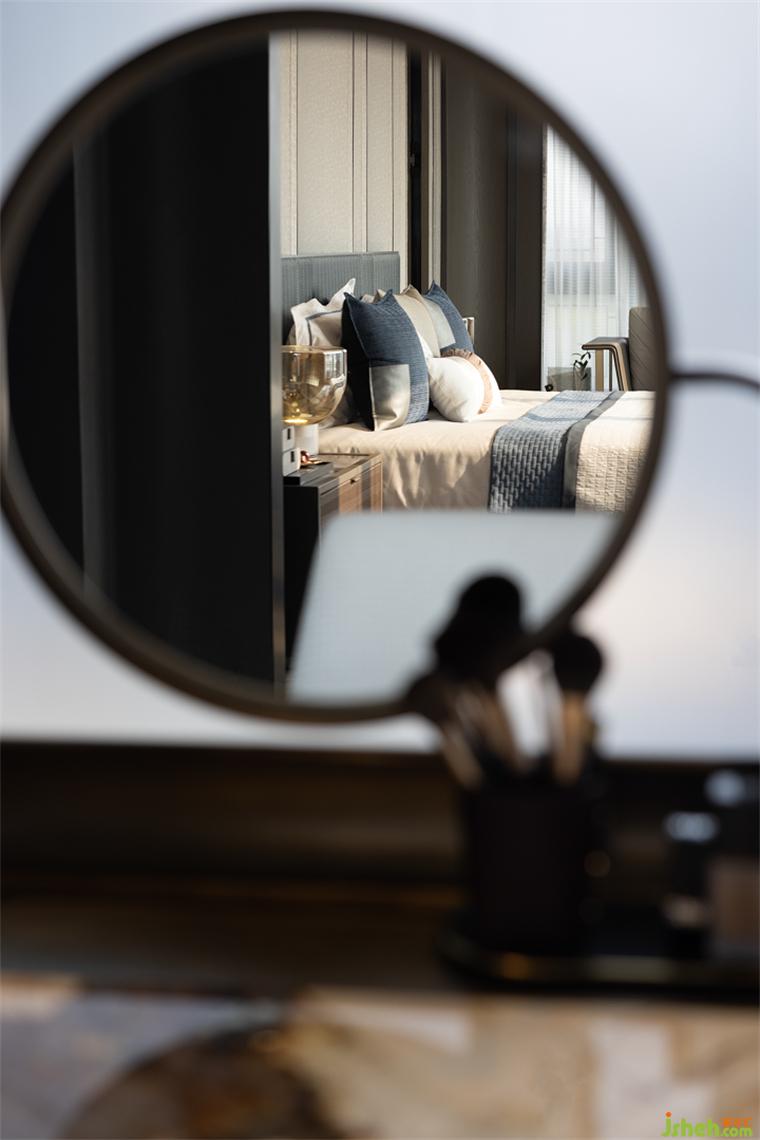 步入二層的主臥空間設(shè)計(jì)彰顯居住者本人的精神追求。在滿足功能與舒適中盡可能的放大空間尺度及視覺感受。在延續(xù)整體風(fēng)格的基調(diào)之上,融合不同顏色深淺、材質(zhì)、肌理,柔軟的床品與地毯等顯示漸進(jìn)的層級(jí)關(guān)系,高級(jí)又帶給人內(nèi)心的寧靜安定。