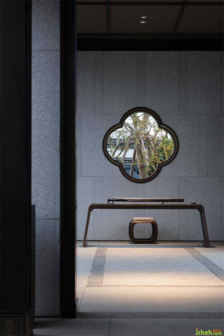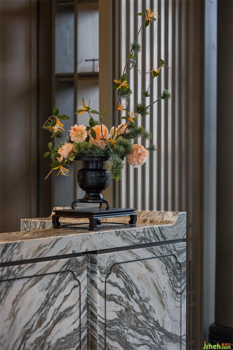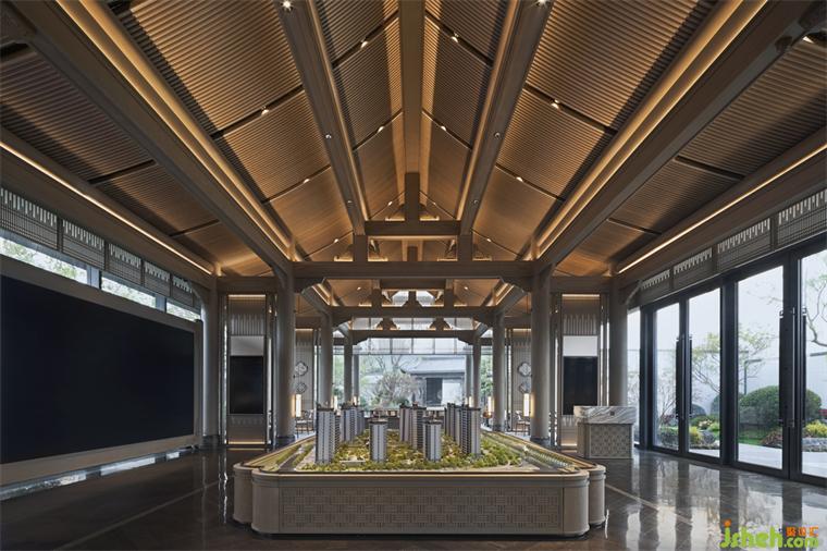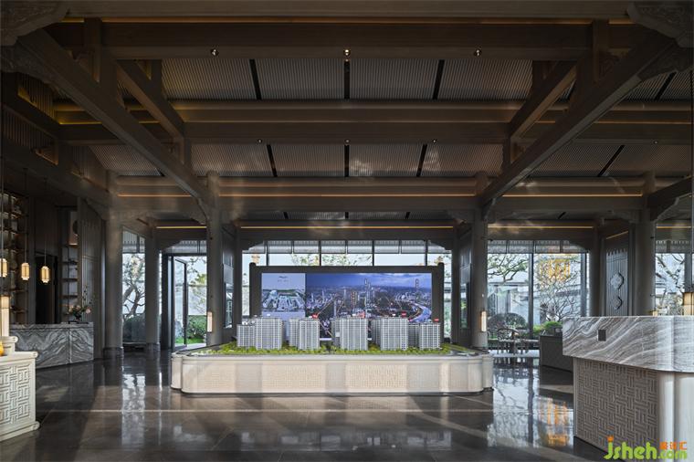 “中為適應(yīng)之謂,庸為經(jīng)久不渝之意”。沙盤區(qū)在傳統(tǒng)的規(guī)矩與均衡中,創(chuàng)造流動的自然之美。透過背后闊景寬窗,材質(zhì)與光影的動態(tài)產(chǎn)生交互,靜是畫,動是景,凝結(jié)出畫面的豐盈意境。