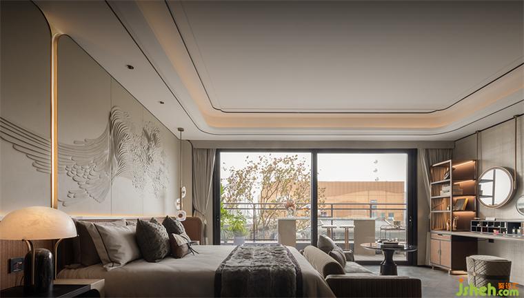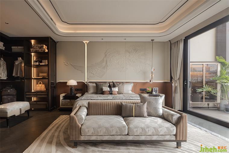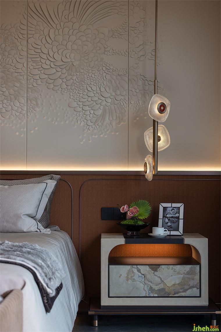 主臥在延續(xù)整體風(fēng)格的基調(diào)之上,樣板房設(shè)計(jì)融合不同顏色深淺、材質(zhì)、肌理,柔軟的床品與地毯等顯示漸進(jìn)的層級關(guān)系,高級又帶給人內(nèi)心的寧靜安定。
