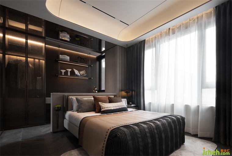 次臥的設(shè)計,靜謐舒雅。佛山樣板房設(shè)計以沉穩(wěn)的奢雅顏色、簡潔的線條與材質(zhì),渲染出一片安寧之境,低調(diào)卻盡是優(yōu)雅愜意。流露出歲月的寧靜。