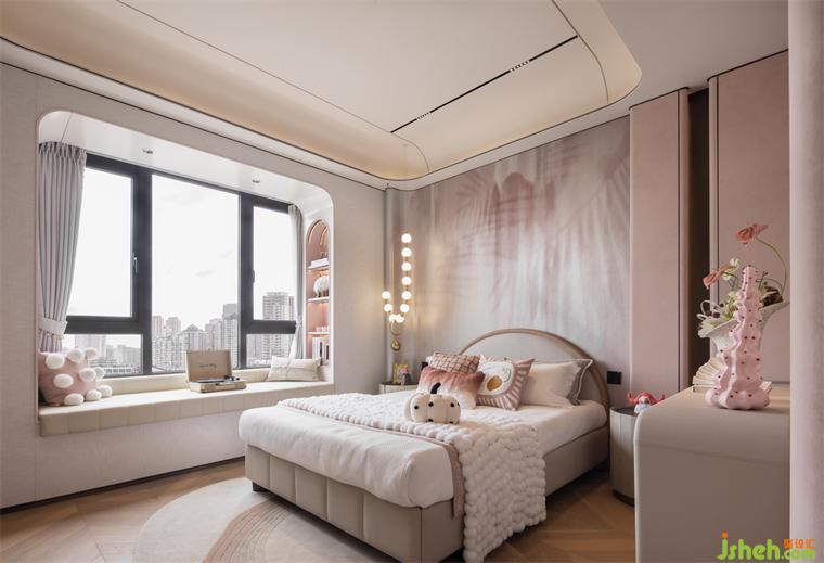 女孩房以功能區(qū)間的和諧布局,搭配櫻粉色調(diào)的調(diào)染筆觸樣板房設(shè)計,凸顯女孩房的溫馨和浪漫的氛圍,佛山樣板房設(shè)計賦予女孩房一種審美想象的啟蒙,烘托孩子的本真、純粹與美好。