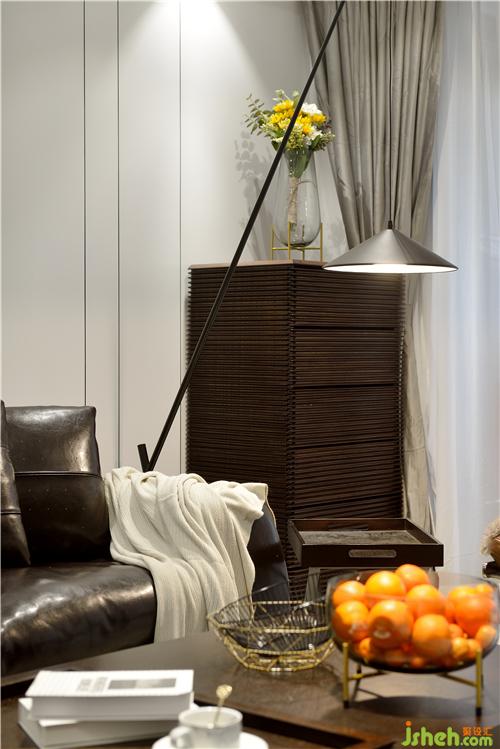 男業(yè)主經(jīng)常加班出差,所以在客廳擺了一把釣魚燈,等候晚歸的主人。光線可以調(diào)節(jié)。無論身處何方,家中總有一盞溫暖的燈等待你回來。室內(nèi)設(shè)計師
