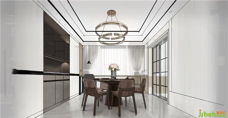 餐廳靠窗邊設(shè)計了一排吧臺,這樣吃完飯可以坐在吧臺上喝喝咖啡欣賞外面的美景放松一下。