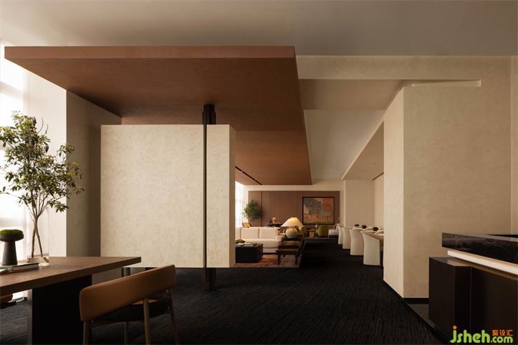 接待區(qū)往左為VIP會客室,往右是活動區(qū),形成了左側(cè)私密空間、右側(cè)公開空間的布局。