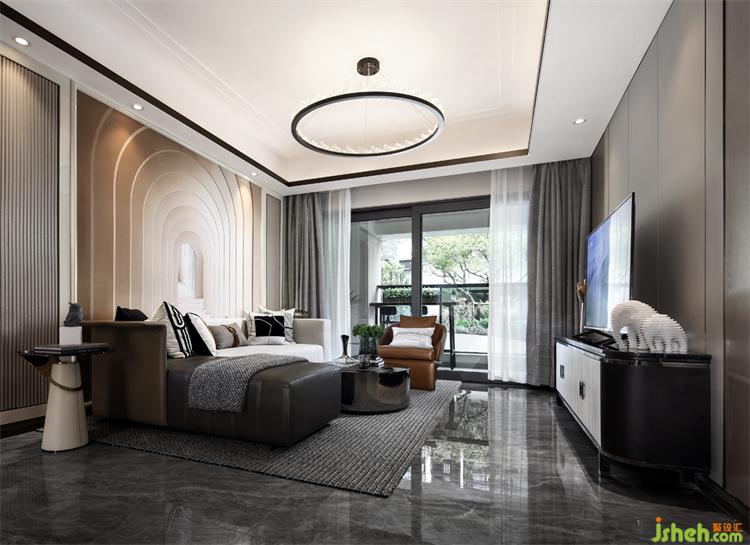 Model House C | 客廳全景客廳以深淺有序的灰色作為空間主調(diào),輔以輕橘色、少許米色,打造高級、品質(zhì)、前沿的空間格調(diào)。廣州亞運(yùn)城精裝樣板房設(shè)計(jì)賦予了空間新的生命,也對高品質(zhì)生活做了詮釋和向往,但除去物質(zhì),重思想的傳承是本項(xiàng)目空間的主導(dǎo)。