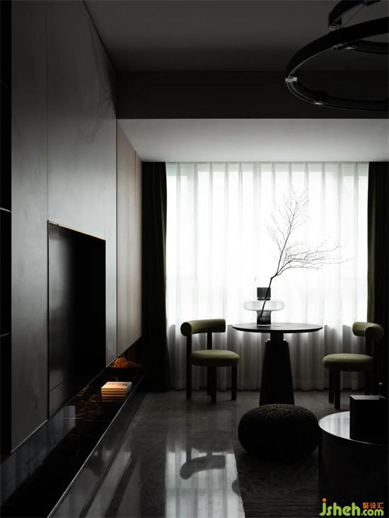 客廳電視背景墻以大塊面的巖板呈現(xiàn),色澤明亮,紋路清晰,底部懸空設(shè)計,豐富空間的層次感。休閑區(qū)也可化作多功能區(qū),中洲青島半島城邦樣板房設(shè)計采用了木飾面,溫潤自然,利用不同材質(zhì)劃分空間,一石一木,相互滲透,展露出靜謐安寧的空間氣質(zhì)。