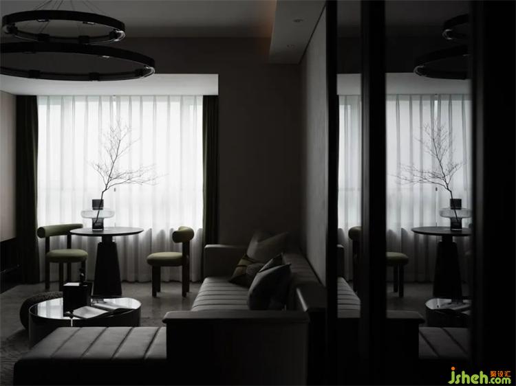 項目以“沐心”為名,運用啞光色、燈光、肌理漆、墻紙、石材與木地板等多元材質(zhì),營造出一種侘寂的氛圍,意在弱化樣板房的商業(yè)屬性,呈現(xiàn)出真實的生活場景,把人的關(guān)注點從直觀的視覺體驗轉(zhuǎn)向內(nèi)在的心理感受,讓心去探索空間。