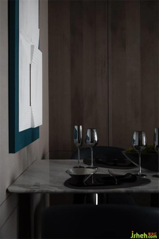 生活回歸原點(diǎn),簡單反而能帶給人更多的享受。餐廳延續(xù)整體主旋律,線面勾勒簡約就餐空間,墻上的藝術(shù)畫透示多層次的生活及人生起落。環(huán)境的宜人與精致,使就餐除卻飽腹,還可以感知愉悅,以及空間注入的生活溫度。