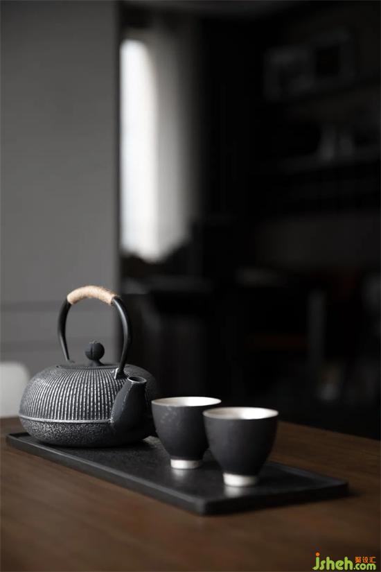 家,是一個能讓人心緒釋放,可以去探索多重性的空間。茶室與客廳相連,地面做抬高處理,中洲青島半島城邦樣板房設計用以分區(qū)。品茗消遣,或以茶會友,端起,放下,從一杯清香中,體悟先苦后甘的人生哲理。
