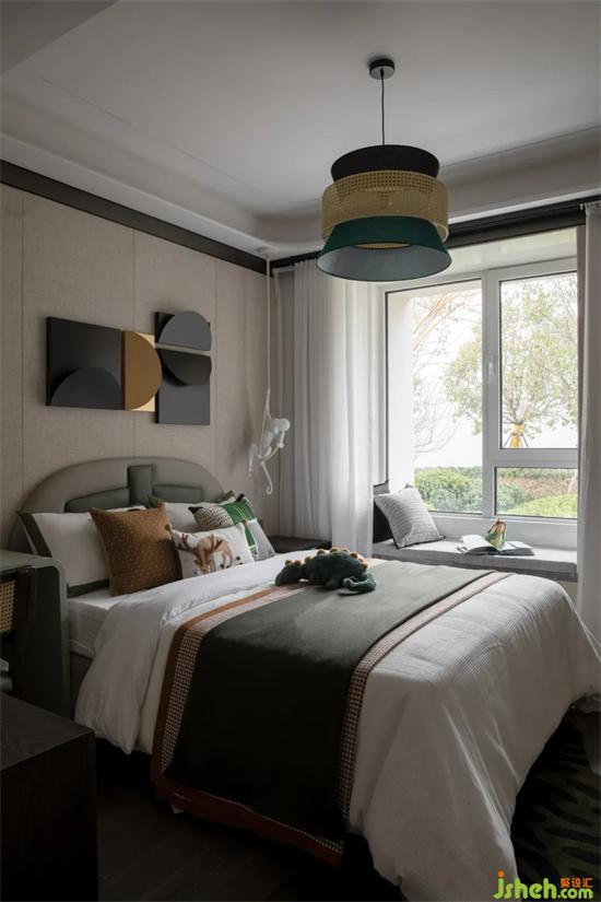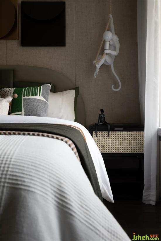 兒童房的設計中融入了動物元素,床頭的吊燈,款式復刻了小猴子攀爬的姿勢,活靈活現(xiàn),萌態(tài)十足,再加上恐龍造型的玩偶和印有麋鹿圖案的抱枕,一個生動有趣的童話世界躍然于眼前,與動物為伴,讓孩子在居家的生活里也能感受到自然生趣,從而快樂地成長。
