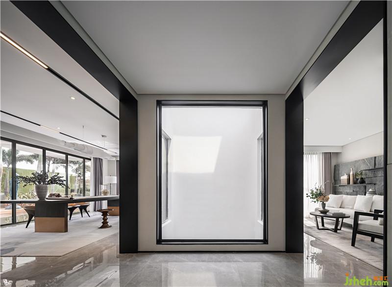 以方形采光井為中軸線,與書畫廳對(duì)望的是會(huì)客廳,兩者的對(duì)稱布置蘊(yùn)含著東方美學(xué)對(duì)空間的構(gòu)建,功能的相互呼應(yīng)也彰顯出“談笑有鴻儒,往來(lái)無(wú)白丁”的高雅遺風(fēng)。在這里,古典與現(xiàn)代的美相互映照、相互融合。