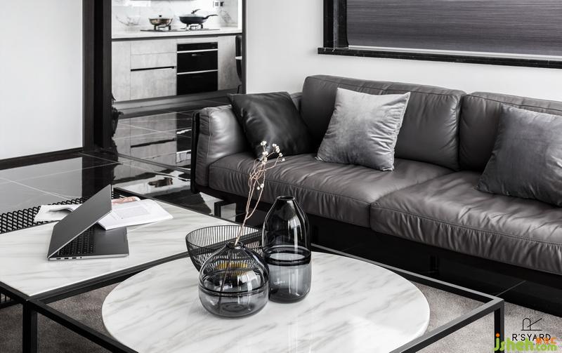 大面積使用黑色,是喜歡出眾、敢于嘗試的人的選擇。明度極低的它容易讓空間晦暗,但如果采光充足,就不是問題。本案客廳有著東、北兩扇窗,充足的光線也讓大面積使用黑色成為了可能。