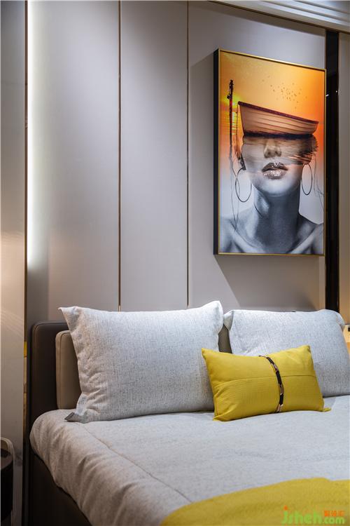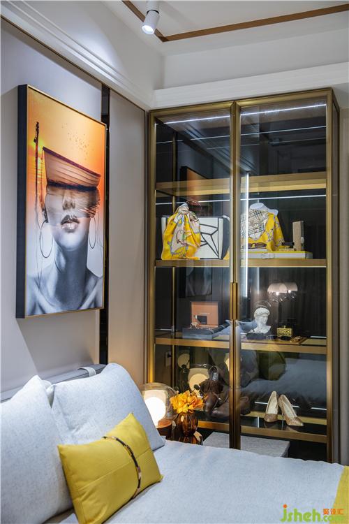 通透的玻璃衣柜,在燈光的照耀下,折射出明亮的光芒,精致與高級(jí)感觸手可及。明朗的大理石、柔軟的床品、具有藝術(shù)魅力的掛畫和擺件,設(shè)計(jì)師以簡(jiǎn)潔有力的設(shè)計(jì)語(yǔ)言構(gòu)建出的一個(gè)隔絕紛擾的寧謐之地。