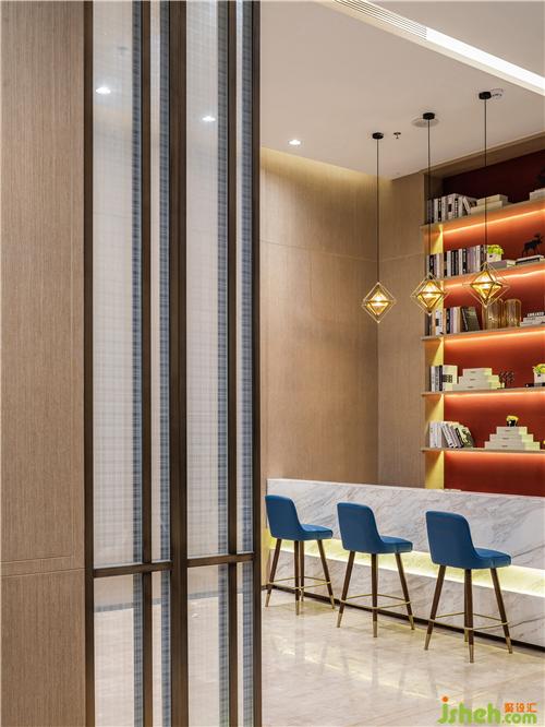 公共洽談區(qū)選用大面積木飾面,是設計師以當代藝術(shù)手法呈現(xiàn)出當?shù)鬲毺氐牡赜蛭幕?,于不知不覺中傳遞出渾然天成的自然氣質(zhì)。