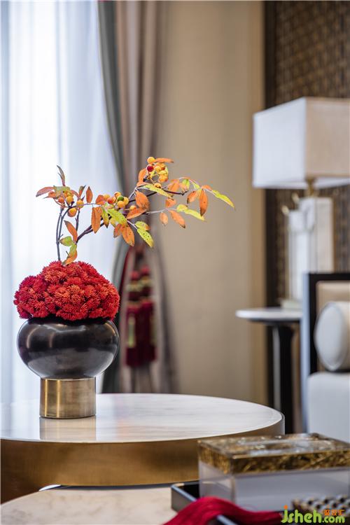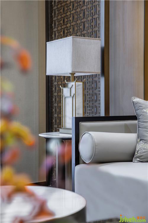 The floor lamps standing beside each group of sofas are like ancient palace lamps, full of cultural charm and sense of ritual.