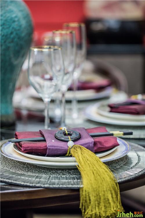 一隅的餐廳布局簡(jiǎn)約,格調(diào)高雅。一幅縹緲的寶藍(lán)水墨畫(huà),樣板房設(shè)計(jì)與紛繁的梅花藝品和仿古銅鏡互融交錯(cuò),加上印記灰大理石和軟包等現(xiàn)代材質(zhì)的注入,流暢地表達(dá)出傳統(tǒng)韻味,亦將現(xiàn)代審美展露無(wú)遺。