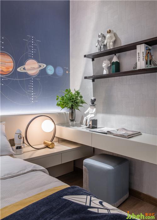 星空、火箭和宇航員,這是專(zhuān)門(mén)為具有夢(mèng)想成為宇宙飛行員的小主人精心打造的,從抱枕、陳列品到燈具、到房間壁紙的選擇,設(shè)計(jì)師為小主人打造了一個(gè)浩瀚的宇宙空間。