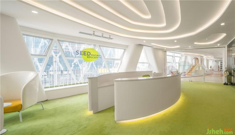 拾“seed”萌芽之意,取logo的“弧”形元素,結合整個建筑外觀的框架,我們結合教育品牌理念希望能提供溫暖舒適輕松自然的空間環(huán)境給每一位小朋友和家長。