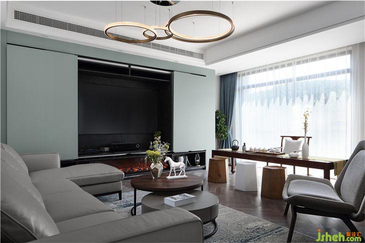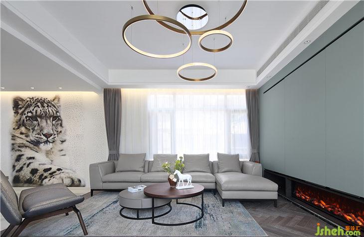 門廳的小豹子,是花了很長(zhǎng)時(shí)間的才選到的,讓整個(gè)空間靈氣了許多并又可愛了些許。往左邊上地臺(tái)就是客廳,正面隱藏式組合柜為空間整理出一個(gè)十分簡(jiǎn)約干凈的畫面,為了讓整個(gè)空間干凈清爽,我尋找了一種類似于巴士門的五金件,讓組合柜是全自動(dòng)的高科技,輕輕按下,家庭影院的就藏在里面。跟別人不一樣的背景墻,因?yàn)槲覀兊谋尘笆顷柟?。茶桌背后的大落地窗,讓陽光肆無忌憚地撞進(jìn)來。讓她窩在沙發(fā)里,聽窗外的花草淺唱。