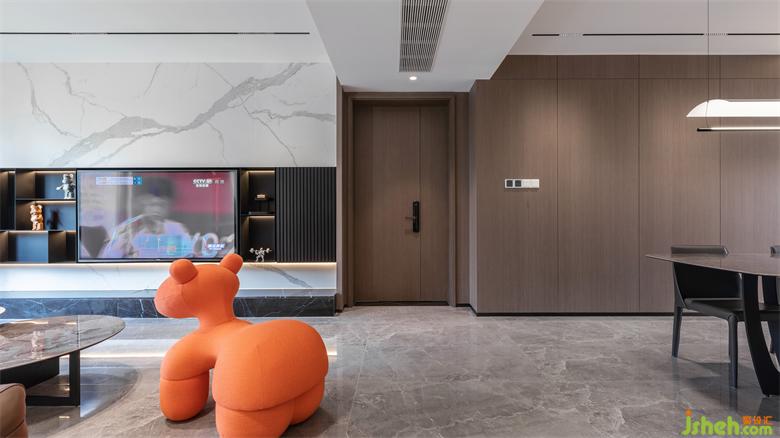 用深色系的木飾面拉遠(yuǎn)視覺(jué)空間,產(chǎn)生很強(qiáng)的室內(nèi)設(shè)計(jì)師縱深感。
