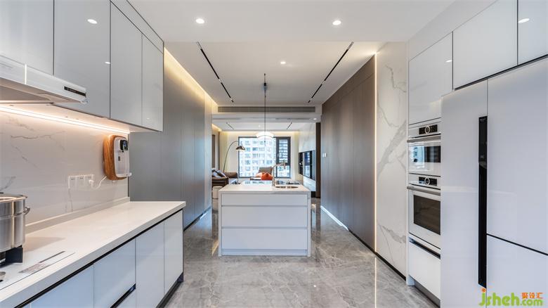 設(shè)計(jì)師采用簡(jiǎn)約明朗的線條,將空間進(jìn)行了合理的分隔。開(kāi)放式的客室內(nèi)設(shè)計(jì)師廳設(shè)計(jì)給人以通透之感,避免視覺(jué)給人帶來(lái)的壓迫感,可緩解業(yè)主工作一天室內(nèi)設(shè)計(jì)師的疲憊。
