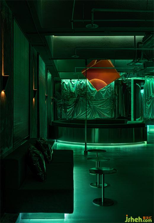 在跟J.MARS深度交流后,我們雙方都一致認為傳統(tǒng)的前臺并不是剛需,近晴設計團隊用“街頭的方式”來解決“街頭的問題”,我們從街頭的電線桿得到靈感,街舞工作室設計用“電線桿式”的立吞吧臺來滿足倚靠、背靠、操作筆記本、手機等功能。噴涂銀色金屬漆的棕櫚樹、紫黃漸變的亞克力魔方、科技感的鐳射布、破爛的水泥墻面……近晴設計以低成本的設計手段去平衡和融合西海岸的HIP-HOP精神文化與當下潮流審美之間的關系。
