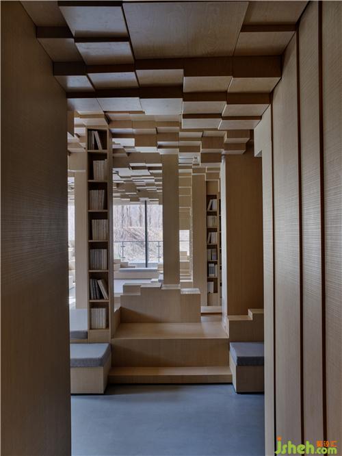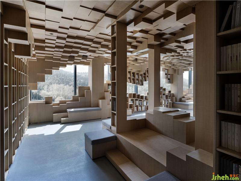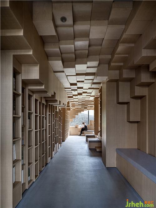 由立方體塊隨機(jī)組合而成的像素風(fēng)景與建筑外部的自然景觀形成視覺圖像的關(guān)聯(lián),起伏流動的外部山水自然地流入建筑內(nèi)部,以別樣的組合方式和獨(dú)特感受讓人們的思緒瞬間的從現(xiàn)實(shí)世界中得以抽離出來,進(jìn)入到意識層面的、抽象的、幾何的和人性化的空間中,體味到時(shí)空流轉(zhuǎn)、由外及內(nèi)地心靈感受的微妙反差,重新構(gòu)筑拓展出全新的心理性的空間體驗(yàn)感受。像素體塊的組合、建構(gòu)與派生,一切都發(fā)生在由立方體構(gòu)成的三維網(wǎng)格中,隨手而變,任心所成。