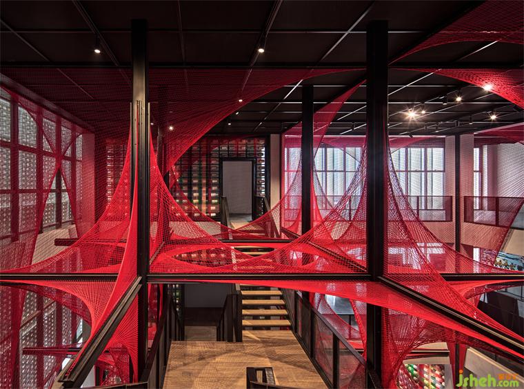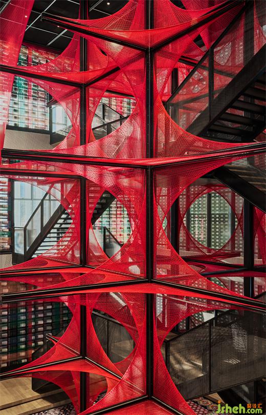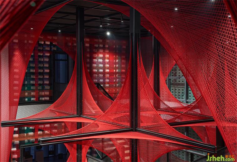 藝術博物館裝修設計在黑色骨骼與紅色血液的虛實相交中,織機上的土家族血脈奔涌而來,生命之火從土壤中開出,“土家之花”綻放——散落在時光深處的原始生命踏入五光十色的商品社會,神采無極、能量畢現(xiàn)。