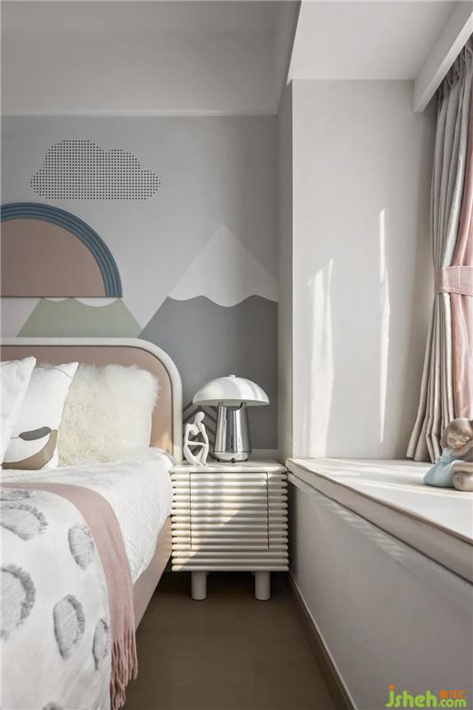 女孩房與男孩房的設(shè)計(jì)各具特色,從孩童的性格特征與個(gè)性喜好出發(fā),設(shè)計(jì)師運(yùn)用可愛的云朵波樣板房設(shè)計(jì)點(diǎn)圖案與潮酷的獅子玩偶,塑造個(gè)性鮮明的空間主題,彰顯出豐富充實(shí)的童趣玩味。