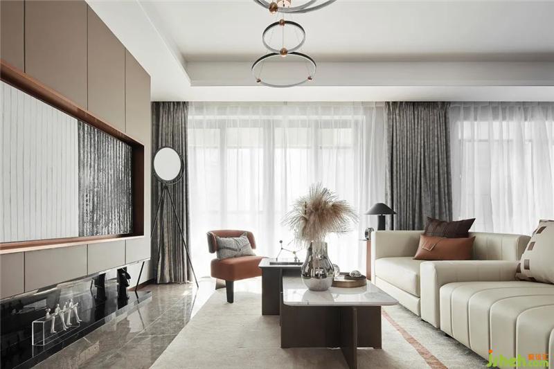 當(dāng)代金屬藝術(shù)擺件、高級雅奢的米白皮革、幾何語素與明亮的橙棕色調(diào),設(shè)計(jì)師以都市的精尚風(fēng)范為核心,將對品質(zhì)生活的深刻解讀運(yùn)用于空間造型中,以不拘一格的藝術(shù)秩序、現(xiàn)代簡約的設(shè)計(jì)語言、精致優(yōu)雅的藝術(shù)細(xì)節(jié),構(gòu)建出一個(gè)具有獨(dú)特魅力的生活空間。