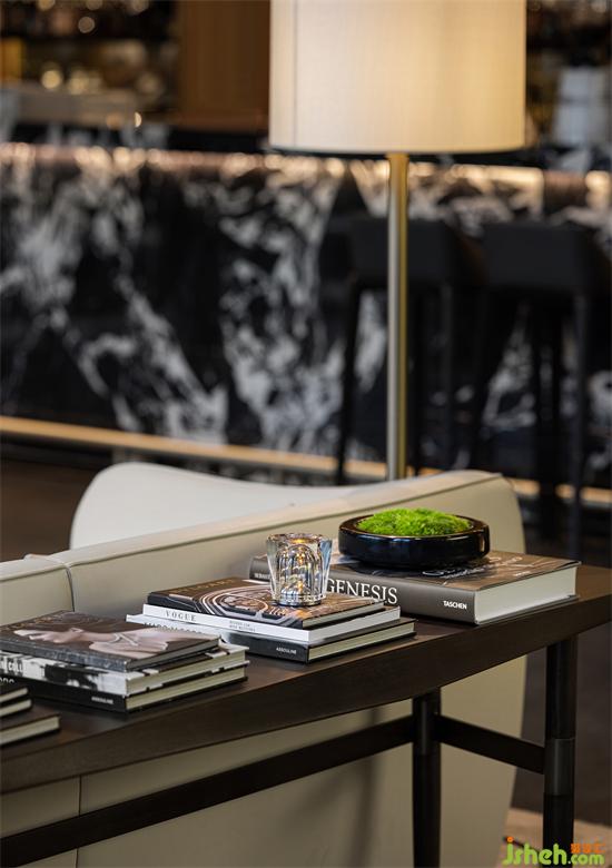 大面積的落地玻璃窗,使窗外引入的庭院景色自然滲透入室內(nèi)空間,售樓處設(shè)計(jì)增加空間中的透氣感。臨窗而坐,帶來(lái)置身寶格麗酒店的美妙體驗(yàn)。