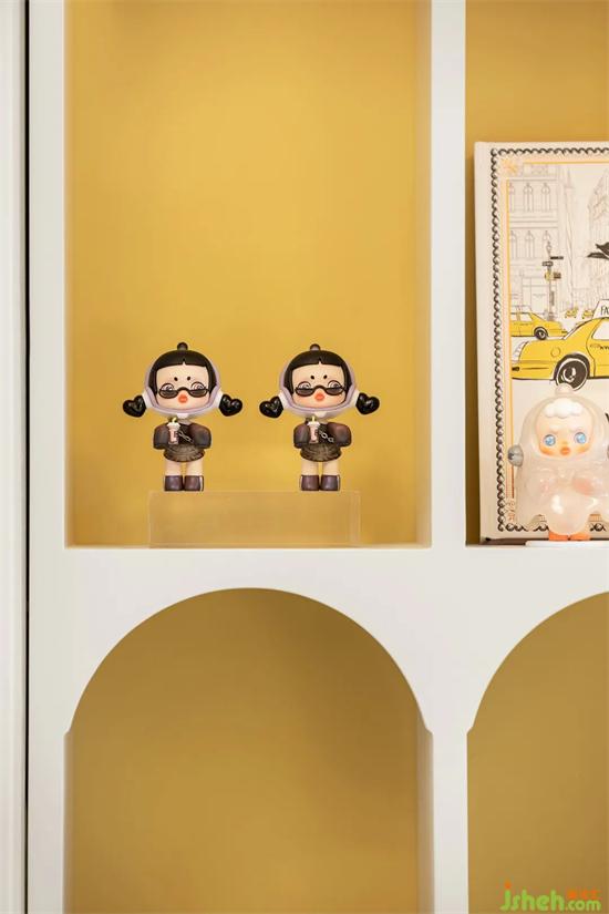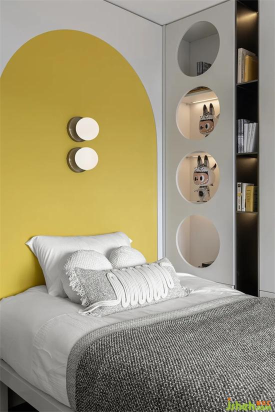 女孩兒房間采用多種不用形狀的模塊化設(shè)計元素,打造出活潑爛漫的童真與樂趣。樣板間設(shè)計美觀又實用的柜體設(shè)計,可以有序收納孩子的玩具、圖書,讓分類收納成為從小培養(yǎng)的好習(xí)慣。