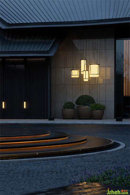 建筑設(shè)計(jì)立足于徐州深厚的漢文化傳統(tǒng),通過現(xiàn)代設(shè)計(jì)美學(xué)語言演繹東方的恬淡與售樓處設(shè)計(jì)唯美。寬廣的大屋檐斜坡設(shè)計(jì),高低錯(cuò)落,鋪陳出節(jié)奏詩(shī)意。移步異景,不沾風(fēng)霜雨雪,亦能感受四季婉轉(zhuǎn)。水景環(huán)島落客區(qū),給予寶格麗酒店式的歸家儀式感。