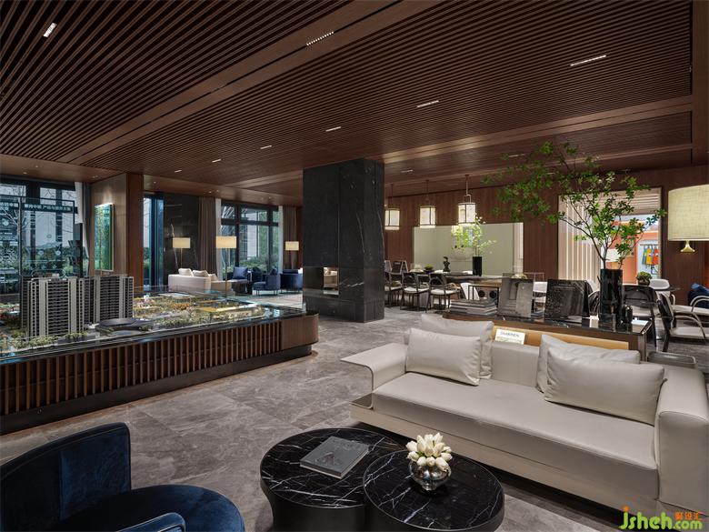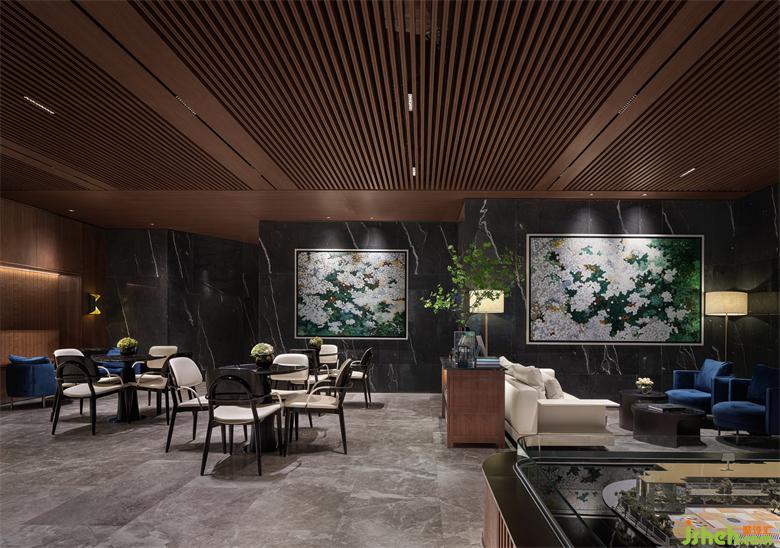 大堂極好的采光下,當(dāng)陽(yáng)光溫柔地灑入室內(nèi),作為大門的玻璃幕墻變成了畫框,圈售樓處設(shè)計(jì)出室外景觀的綠意盎然,與散布于空間內(nèi)的藝術(shù)裝飾品形成無(wú)聲的自然對(duì)白。