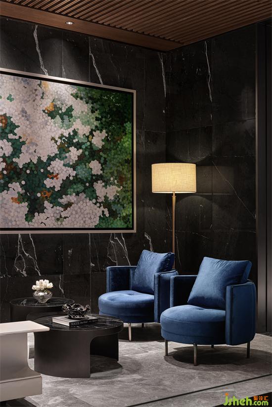 黑白為主色的軟裝、柔和溫暖的光影與抽象而精致的藝術(shù)品點(diǎn)綴,售樓處設(shè)計(jì)營(yíng)造出一種隨遇而安又不失奢華優(yōu)雅的氛圍,使得原本幽暗的空間更契合寶格麗的柔和雅致。