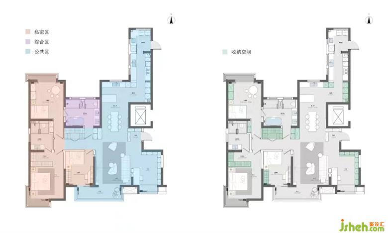 改變男孩房和主臥進門墻體,擴大過道面積后,新增衣帽間,男女主人的衣物可以分開存放,極大的增加了儲藏量。書房后側(cè)設(shè)置了 L 型儲物柜,可以滿足男業(yè)主儲藏鞋物的需求。家裝設(shè)計每個空間都設(shè)有高柜去收納各空間所需要收納的物品,使整個空間在視覺上保持整潔、舒適。