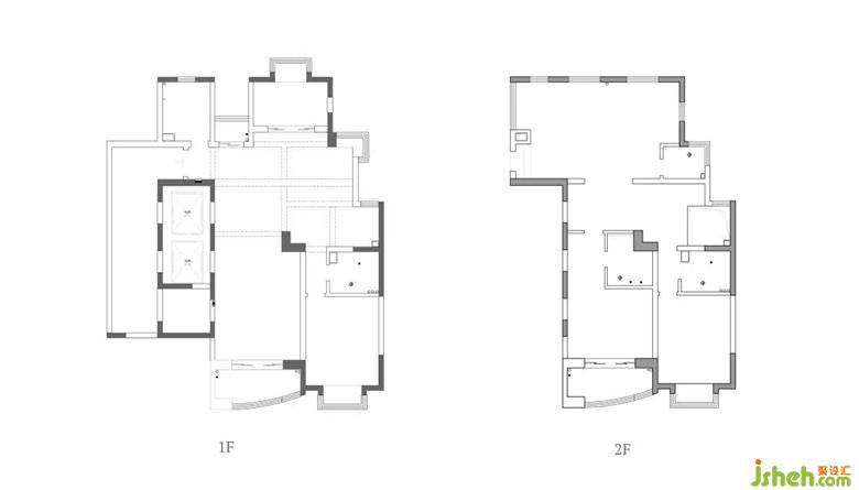 一層原始是公共區(qū)域,考慮到兩個業(yè)主都是律師,會經(jīng)常加班,所以調換一、二層的功能,將臥室區(qū)域放于一層,方便回家后能直接進入到自己的私密空間。整個二層一分為二,一側是以客廳休閑為主,另一側則圍繞餐廳廚房展開?;Q功能后,二層原始墻體都過于封閉,家裝設計需要打開墻體重新規(guī)劃成一個通透的空間。這樣既方便了生活動線,又在空間上形成了交互互通,不同功能區(qū)域之間彼此獨立,又有著貫通的流動感。