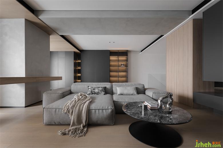 整體空間以經(jīng)典黑白灰加以原木色為主題配色 。Living Divani 的定制款沙發(fā)是整個區(qū)域的核心,搭配十二時慢的藝術感茶幾,呈現(xiàn)出鮮明有力的表現(xiàn)力,主宰了空間的第一印象。黑色、木色不同紋理的門板搭配上鏡面給人帶來的呼吸感,家裝設計不規(guī)則的設計中又有著規(guī)則的舒適度。收納功能也在隱形中得到了提升。