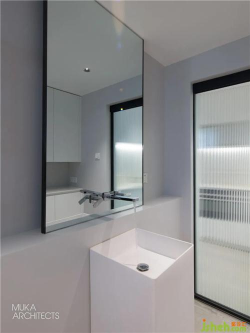 榻榻米房間整面的收納延續(xù)書桌關(guān)系做了一個置物凹口的視覺打破,再利用鏡面強(qiáng)化使感受上有了一個更深的延伸上海裝修設(shè)計。除了必要的盥洗與更衣。全屋使用的裝飾性鏡面元素原則上都是遠(yuǎn)遠(yuǎn)低于或高于人的日常視線。