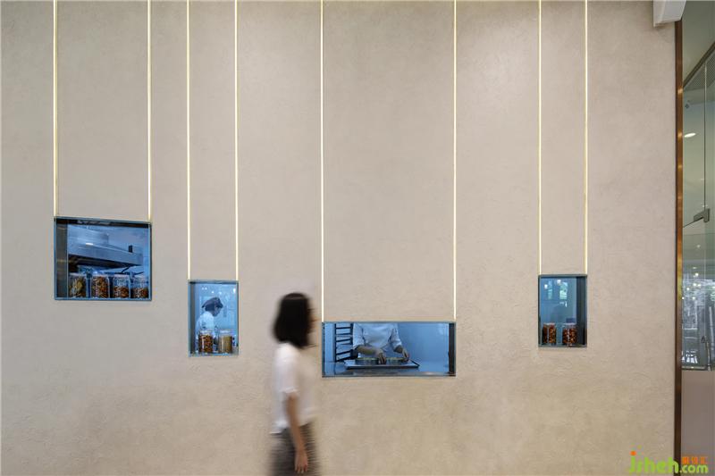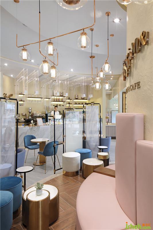 主要材料:藝術涂料、意大利白金砂大理石、瓷磚、夾絲玻璃、玫瑰金不銹鋼、亞克力