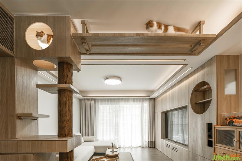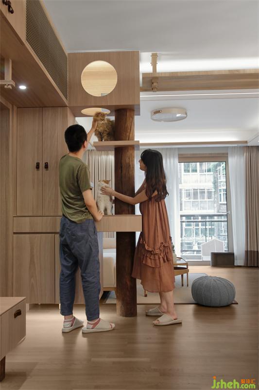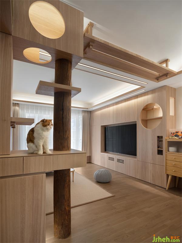 當(dāng)下養(yǎng)寵物的年輕人,已經(jīng)脫離了單純買貓別墅家具,而是在裝修的時(shí)候就從貓的生活習(xí)性去考慮「家」的動(dòng)線規(guī)劃,業(yè)主希望貓咪在家不僅是寵物,同時(shí)還是平等的空間使用者,讓居所真正實(shí)現(xiàn)「人貓共樂(lè)」。因此,該案我們嘗試用貓的視角去審視,從空間功能的本質(zhì)出發(fā),去探討如何從尺度、光線、生活習(xí)慣去研究。