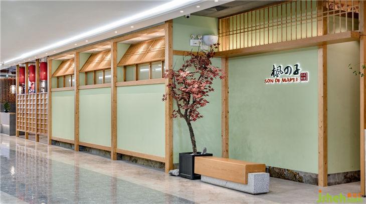 本案重視空間層次感,使用多隔讓整個(gè)空間流動(dòng)與分隔,搭配簡(jiǎn)潔、硬朗的直線條,迎合日式風(fēng)最求內(nèi)斂、質(zhì)樸的設(shè)計(jì)風(fēng)格。芥末綠墻面與木質(zhì)柵欄推拉門(mén)搭配,墻上內(nèi)陷白底紙傘紋,墻下楓樹(shù)三三兩兩裝飾,混搭少量現(xiàn)代裝飾,讓整個(gè)空間淡雅節(jié)制、深邃禪意,風(fēng)格獨(dú)特鮮明,一眼望見(jiàn)。