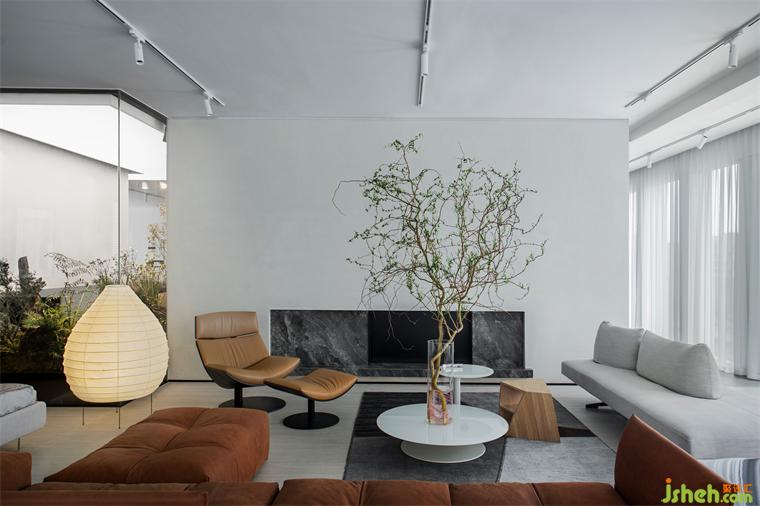 杭州總部展廳設計以植物作為通透隔斷的展示區(qū)域,為整體空間帶來生機與活力,仿佛空間在這里可以自由呼吸,形成一種透氣感??此坪唵蔚目臻g因為細節(jié)處理和材質肌理而變得更有質感。