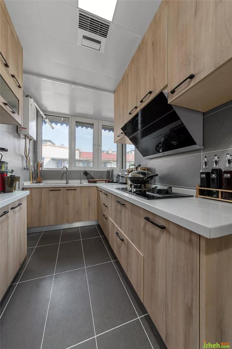 廚房是改造過(guò)后的模樣。U字型滿足了一個(gè)美食愛(ài)好者的功能需求。細(xì)節(jié)的收納才可以讓廚房看起來(lái)更整潔。