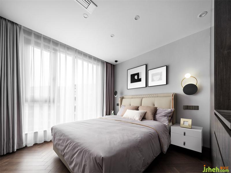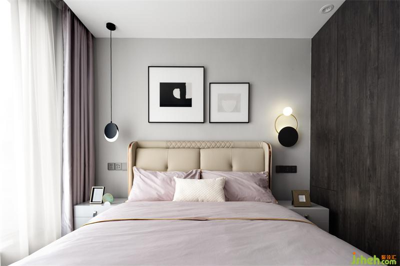 莫蘭迪粉細(xì)膩的床品、暖黃色木質(zhì)地板,搭配出令人感到舒壓的寢居氛圍,抽象畫(huà)作成為空間的調(diào)和劑,從各類細(xì)節(jié)呈現(xiàn)獨(dú)運(yùn)匠心。
