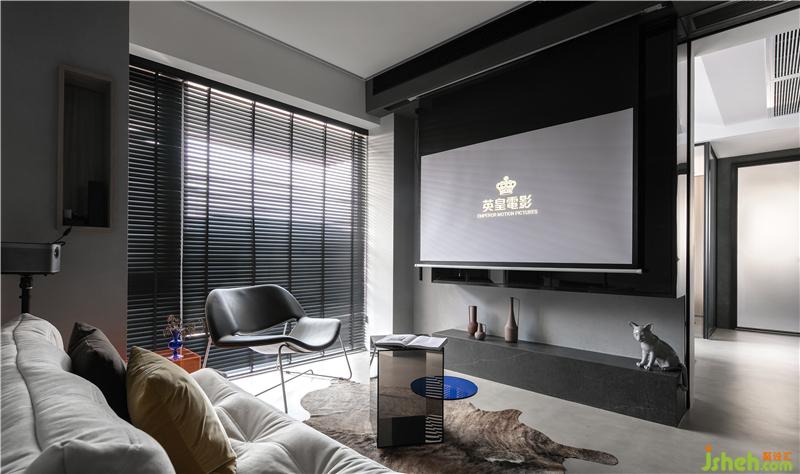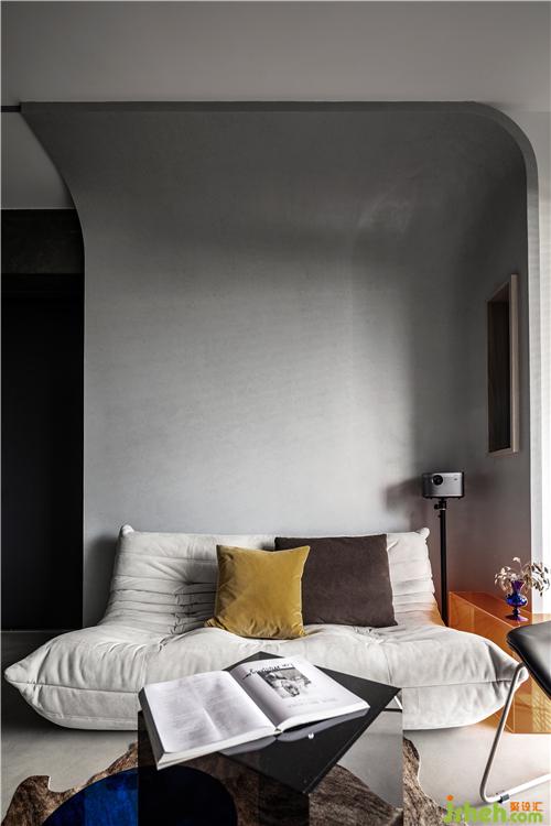 沙發(fā)背景墻造型是客廳的一大亮點,通過切割面的形式出現(xiàn)。色彩上與沙發(fā)相呼應(yīng),材質(zhì)上選擇灰色藝術(shù)涂料,凸顯啞光的質(zhì)感,在修飾了原先的墻面的基礎(chǔ)上,也讓空間顯得更有層次感,自然、立體。在沙發(fā)背景墻的右邊開了一扇窗洞,對應(yīng)的里面是電源插座,在使用投影儀還是日常充電時,都十分方便。