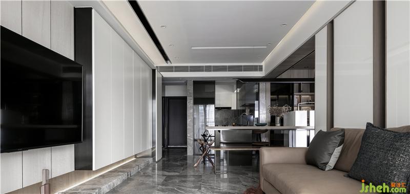 深圳室內(nèi)設(shè)計(jì)師設(shè)計(jì)了玄關(guān)處入門左手邊為一整面的鏡子,用以出門前正衣冠。地面為三分之一工字鋪的大理石紋路的地磚。整體采用的是無(wú)主燈設(shè)計(jì)。