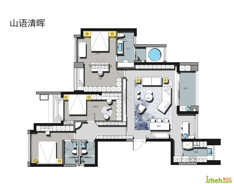 業(yè)主家對于儲物需求大,室內(nèi)設(shè)計(jì)師在入戶的左手邊的過道兩邊設(shè)置了一排儲物柜,用以平時(shí)出入門的物品的放置。過道的盡頭是次臥與兒童房,次臥的旁邊有兩個(gè)衛(wèi)生間。業(yè)主家的鞋特別多,兩排儲物柜可以滿足業(yè)主的鞋的放置。